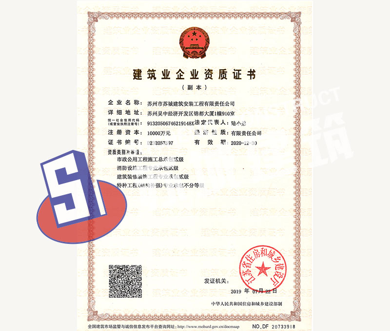 蘇州市蘇城建筑安裝工程有限責任公司,擁有主項建筑工程施工總承包一級資質,增項市政公用工程施工總承包二級資質和建筑裝修
